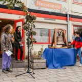 Waldorf100 Klok zingt tijdens herplaatsen van de grondsteen in Ede